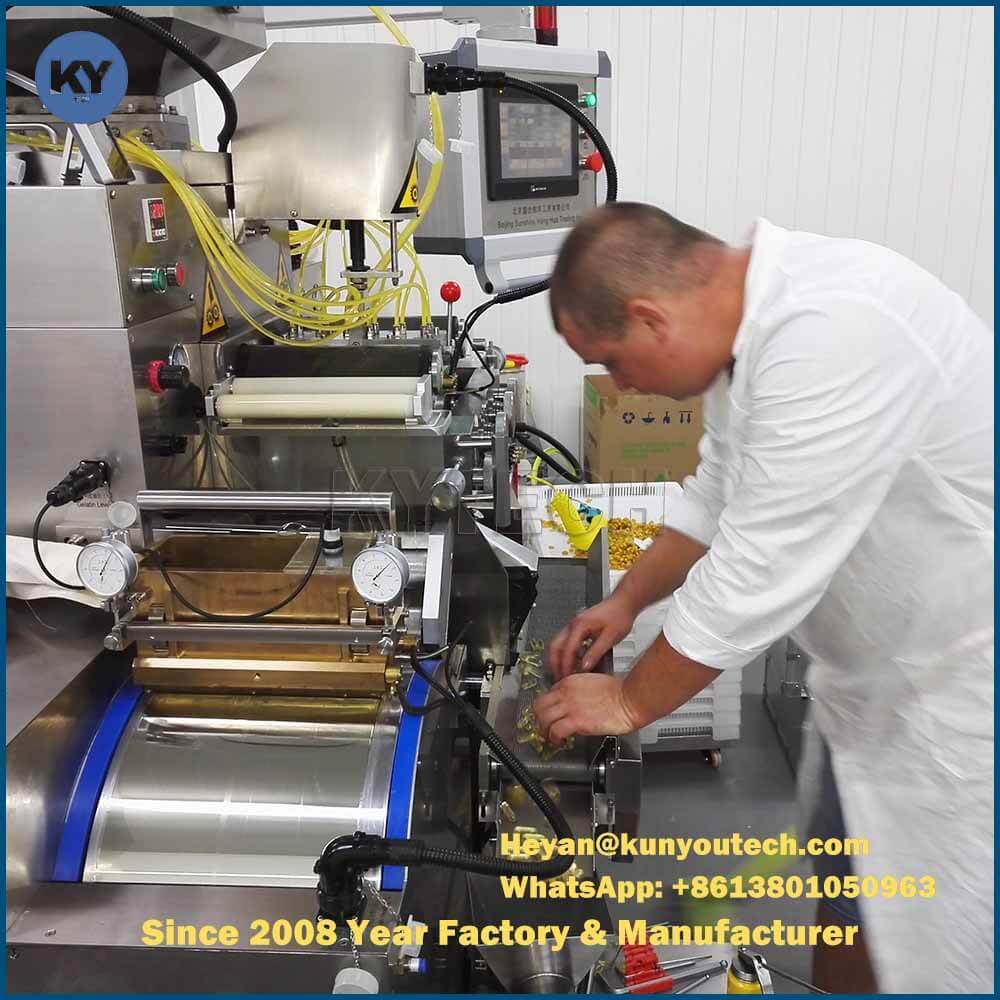 De componenten van de S610PB Verfbal/Softgel Inkapselingsmachine zijn voornamelijk afkomstig uit Duitsland. De mechanische onderdelen van de hele machine maken gebruik van onafhankelijke, individueel instelbare smering, waardoor mechanische slijtage wordt verminderd en de tijd zonder fouten wordt verlengd. Er zijn twee manieren om de cantilever te bedienen: een groot touchscreen en een schakelaar om uit te kiezen. Het besturingssysteem heeft een diagnosefunctie voor storingen. Na de upgrade kan het diagnose op afstand uitvoeren. De nieuwe 8-type amorfe droogrolkooi is voorzien van snelheidsregeling met variabele frequentie en een redelijkere structuur. De kooi kan worden gedemonteerd zonder de droger te verplaatsen. Het is gemakkelijk schoon te maken. Er zijn materiaalopvangschijven onder de rolkooi, waardoor de S610 beter voldoet aan de GMP-vereisten.