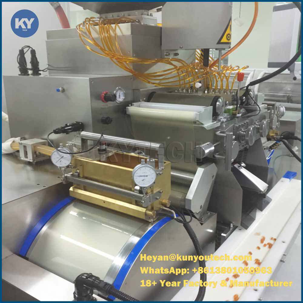 De S407 Softgel Encapsulatiemachine is ontwikkeld op basis van de S406 softgel encapsulatiemachine. De lengte van de matrijsrol is 20 mm langer. Het combineert de voordelen van buitenlandse apparatuur en de eisen van klanten, met de behoeften en de grootste voordelen van klanten als uitgangspunt. Naast de kenmerken van de S406 heeft het de volgende kenmerken. De S407 maakt gebruik van PLC-bediening, wat de bediening gemakkelijker maakt. De rotatiesnelheid van de matrijsrol kan worden geregeld tussen 0 en 7 tpm, zodat gebruikers de meest geschikte rotatiesnelheid kunnen kiezen op basis van gegevens van verschillende materialen en technieken. De droogcyclus wordt uniform geregeld door de PLC, zodat gebruikers de cyclustijd gemakkelijk kunnen aanpassen. De tuimeldroger is ontworpen met een apparaat om operators eraan te herinneren zich goed voor te bereiden bij het lossen. De S407 kan de functie van statistische verklaringen en afdrukken realiseren. De smeeroliepomp van het aandrijfsysteem van de machine wordt alleen door de motor aangedreven, wat de smeerprestaties aanzienlijk verbetert wanneer de hoofdapparatuur op zeer lage snelheid draait. Tegelijkertijd kan het machinevibraties verminderen, de revisietijd van de machine verlengen en investeringen voor gebruikers besparen.