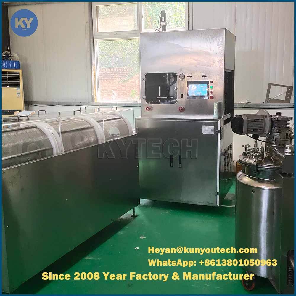 Model MD-3 naadloze softgel machine bestaat uit medicijnvoorziening, gelatine voorbereiding, pulsnat snijden, koeling olie circulatie, koeling, capsule vormgevende systeem.Door gebruik te maken van geavanceerde pulserende snijtechnologieIn vergelijking met de normale zachte capsule inkapselingsmachine kan deze machine een ronde capsule produceren zonder dure malen.er is geen verspilling van gelatine.